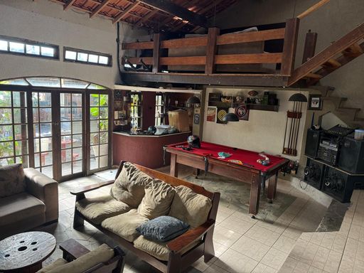 • Sala ampla com bar, lareira e mesa de bilhar