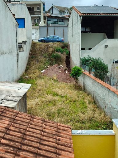 Terreno 90% plano em nível abaixo do nível da Rua, possibilitando uma construção diferenciada, como uma garagem com rampa, salão de festas e até piscina.